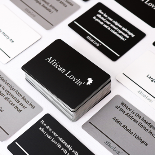 African Lovin' card game includes conversation starters like no other. Pull these out at games night and get to know your partner and friends in greater depth. You may find some unexpected discoveries as you do