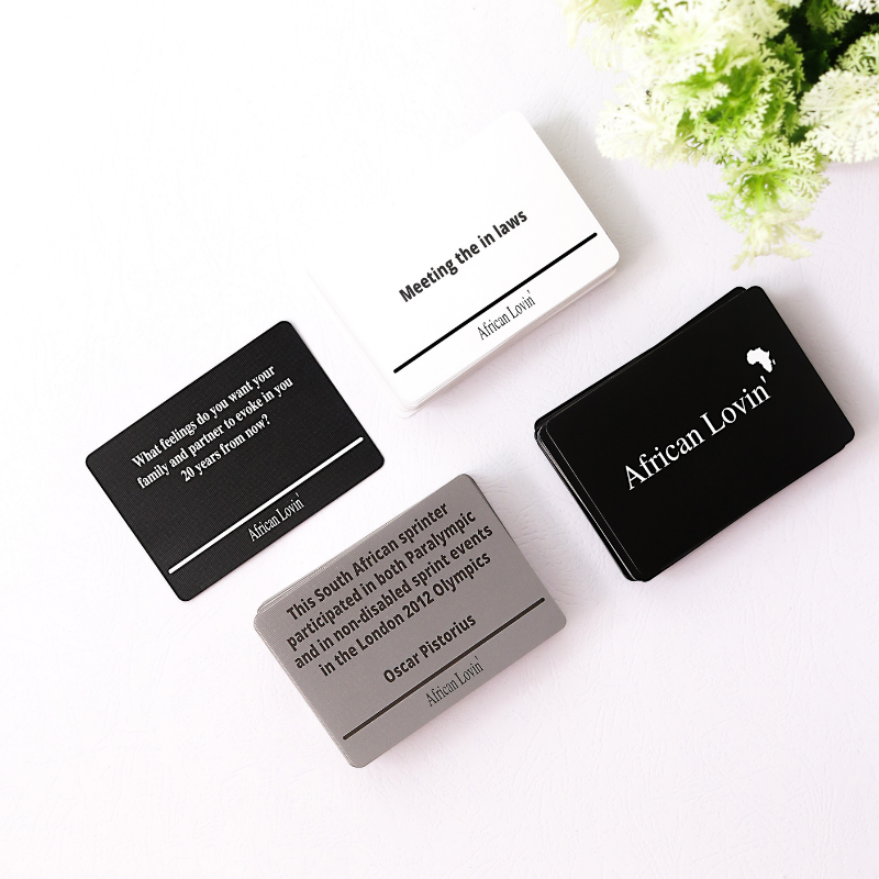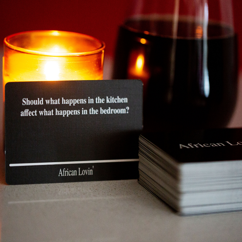 African Lovin card game includes conversation starters like no other. Pull these out at games night and get to know your partner and friends in greater depth. You may find some unexpected discoveries as you do